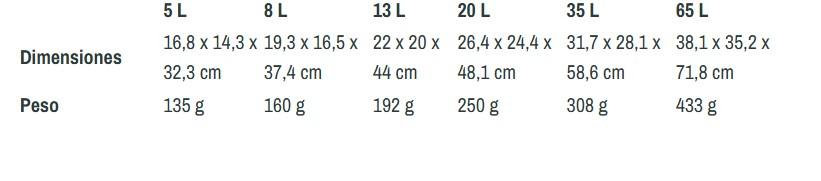 Peso: Varía según el tamaño de la bolsa.