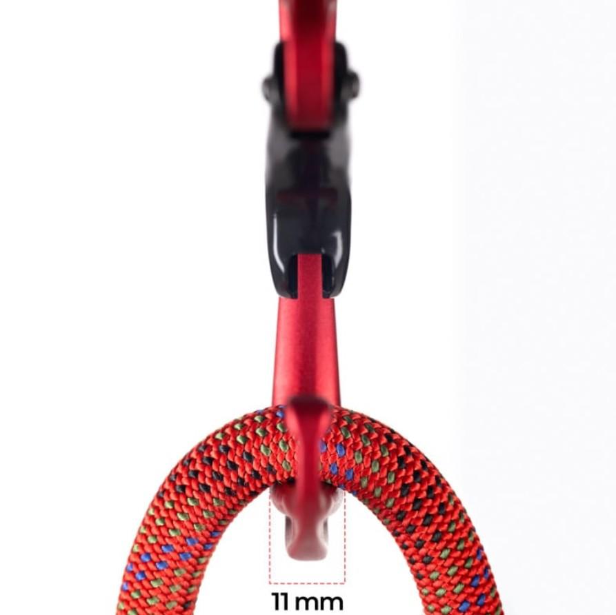 • Conical Nose: Su nariz puntiaguda, de forma cónica, facilita la inserción del mosquetón en chapas u otros puntos de conexión de forma precisa y fluida.
