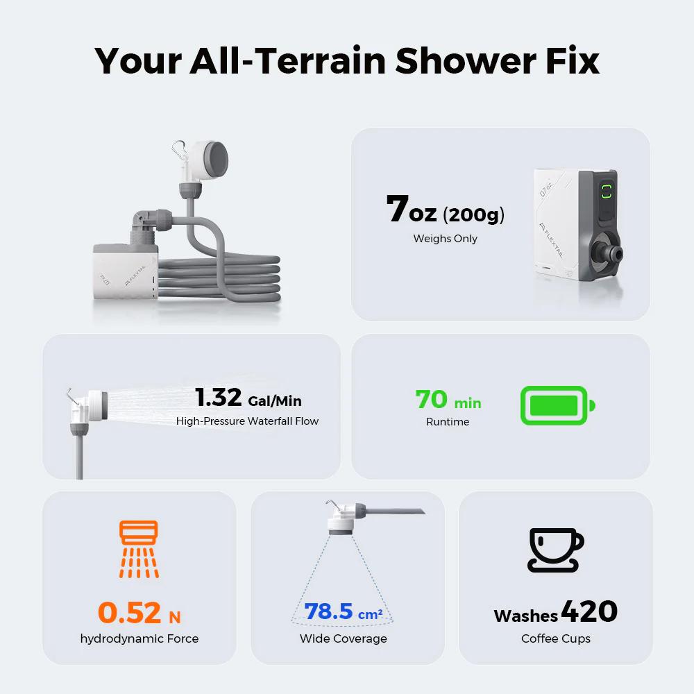 La Tiny Shower es la ducha portátil instantánea más pequeña del mundo, diseñada para ofrecer una solución compacta, práctica y eficiente para refrescarte dondequiera que vayas, ideal para actividades al aire libre, camping, playa o viajes.