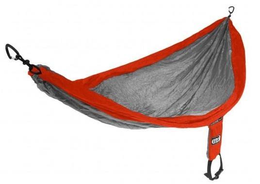 Hamaca para una persona de Nylon Taffeta de alta resistencia 70D. Capacidad: hasta 181 kilos. Con 2 mosquetones de aluminio 7075. Tela respirable, de secado rapido. Cortura triple de alta resistencia . Dimensiones 2,8 mt x 1,4 mt. Pesa 453 grs.