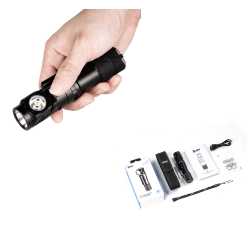 La linterna L1 combina dos sistemas de iluminación independientes en un solo cuerpo: una luz principal de largo alcance y una luz auxiliar versátil, ofreciendo máxima adaptabilidad para exteriores, trabajo profesional, seguridad y uso intensivo.