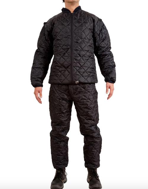 Fabricada en tela Oxford 100. 100% poliéster. Aislante de napa y forro de franela de algodón 100%. Puños tejidos en brazos y piernas, manga desmontable.