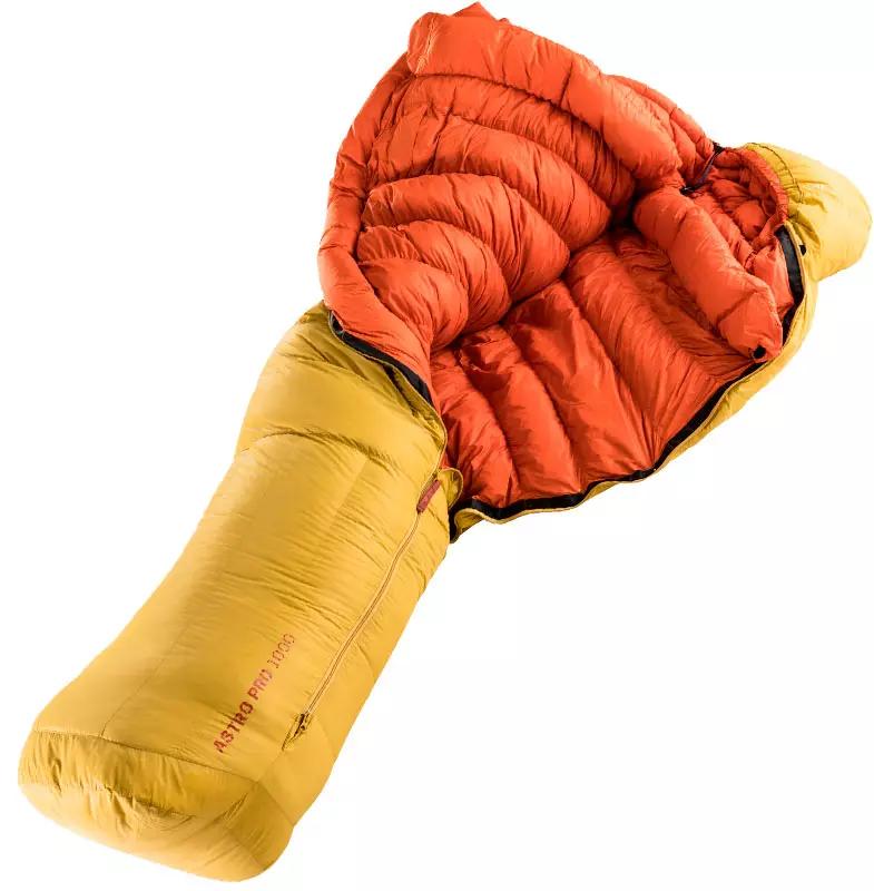 El saco de dormir Astro Pro 1000 L es nuestro saco de dormir de pluma de expedición para aventuras alpinas con una tienda de campaña o para dormir bajo las estrellas. El forro se estira hasta un 25% a lo ancho y se adapta a la forma de tu cuerpo, mientras atrapa el calor.