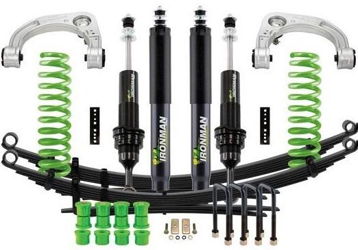 Suspensión Ironman 4x4 completa con amortiguadores FOAMCELL PRO, levante de 50mm, configurada para uso extremo en la corndiciones más severas de: Demanda en la conducción, temperatura extremas en ambientes de frío y calor, amortiguadores resistentes al impacto de piedras permanentes, y al mismo tiempo configurada para los pesos de la carga y accesorios indicados. etc..